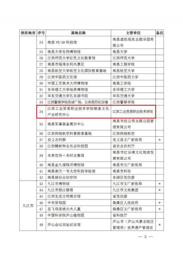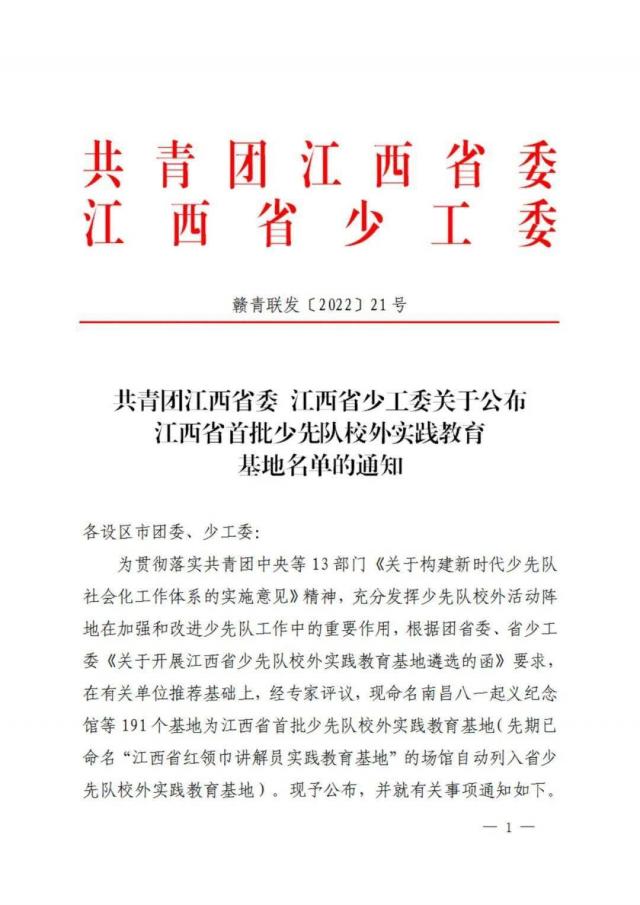 近日,团省委、省少工委联合印发《关于公布江西省首批少先队校外实践教育基地名单的通知》,经学院团委推荐上报,专家评议,学院粮食文化产业研究中心被命名为江西省首批少先队校外实践教育基地,全省高校共12家场馆入选。