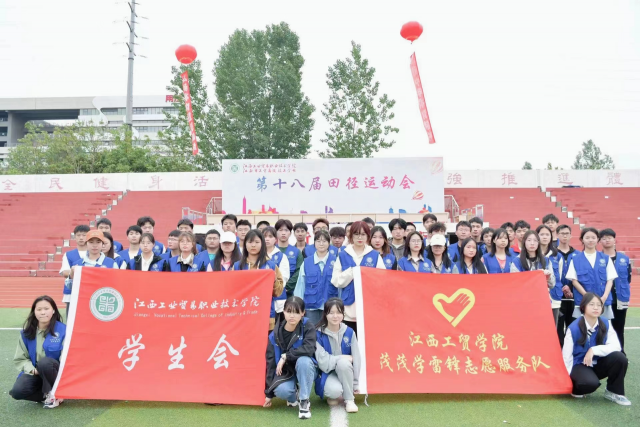 5月10日至12日,江西工业贸易职业技术学院第十八届田径运动会成功举办。为助力运动会顺利进行,院团委“茂茂”青年志愿者协会联合各系学生会志愿者积极开展“运动展风采,蓝衣在行动”志愿服务活动,参与人数达60余人。