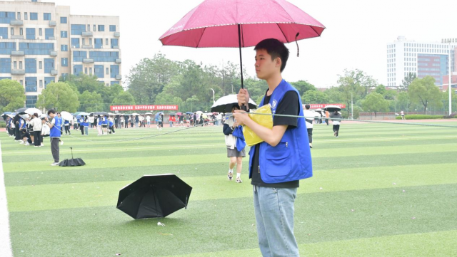 细雨绵绵的天气都阻挡不住志愿者们为同学们服务的热心,我们铭记赛场上的运动员们挥洒汗水,奋力拼搏的每个精彩瞬间。我们也同样要为志愿者辛勤无私奉献点赞,这样一群可爱的“小蓝衣”同样是赛场的主角。