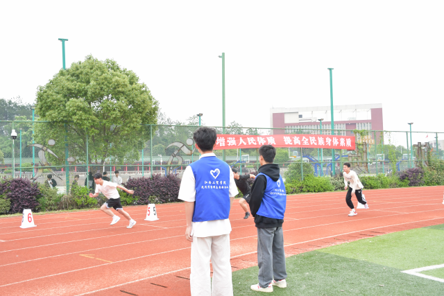 身穿蓝衣马甲,肩负志愿使命。青年志愿者们遍布在操场各点位协助老师工作,维持操场秩序,随手捡起地上的垃圾,带领问路同学到相应运动场地。我们携青春力量,共创美丽校园。