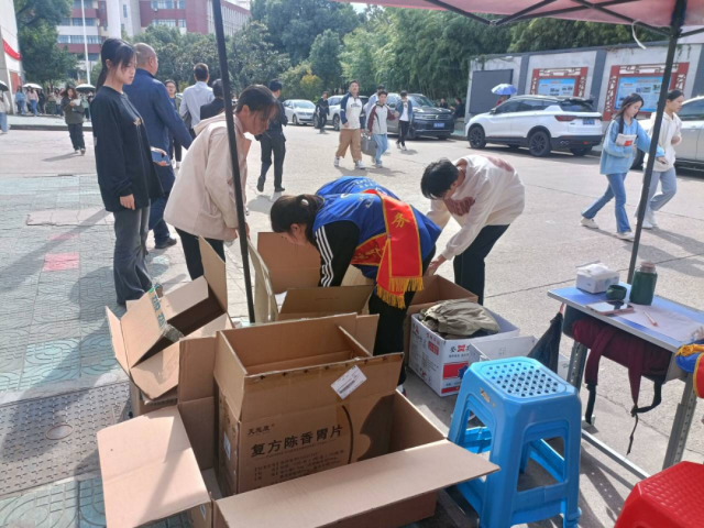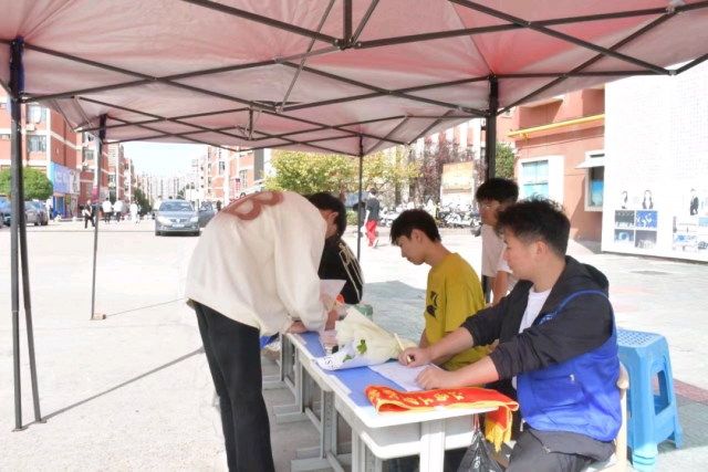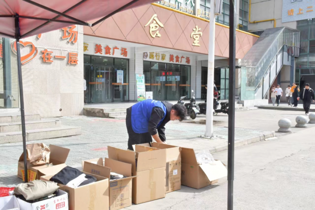 在食堂门口,志愿者们轮流值班为前来捐衣的师生提供解答服务,面带微笑认真对待每一位前来捐衣的爱心人士,在校园内掀起爱的涟漪。同学们也踊跃响应,纷纷携带闲置衣物参与捐赠,展现了大学生积极向上、乐于助人的精神。