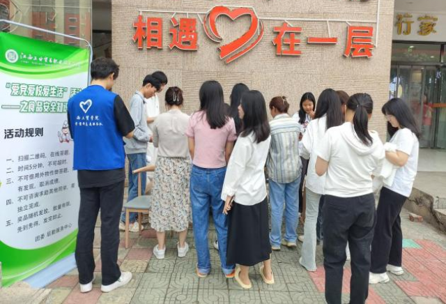 为了引导学生关注食品安全,了解食品安全的重要性,增强食品的安全意识,并把食品安全相关知识运用到日常生活中去,学院团委与后勤服务中心于2024年4月1日在食堂门口联合开展“爱党、爱校、爱生活”之食品安全知识竞答活动。