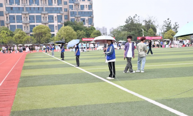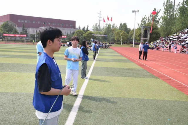 检录处,他们为运动员做好前期工作,让运动员有充足的准备迎接比赛;跑道旁,他们拉起绳维持秩序,保证运动员正常比赛;起点处,他们为运动员加油呐喊;终点处,他们两两一组去迎接刚完赛的同学,保证能及时关注参赛学生的安全。