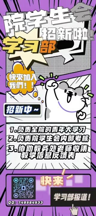 院学习部通过营造学习氛围,组织竞赛活动,促进学风建设,增加校园学习氛围。作为老师的好帮手,学习部成员还负责进行教学反馈与沟通,促进教学质量的提高,保障师生之间的信息流通。此外,大学生活中必不可少的青年大学习,也是由学习部进行活动的宣传与管理,使青年大学习在同学们的生活中常态化。