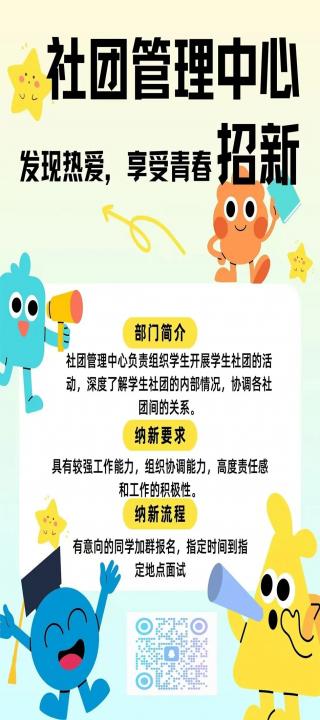 院社团管理中心,是学院社团活动的核心管理与服务机构,它将各个社团与学院紧密连接,确保社团活动在规范、有序、积极的轨道上运行。在这里,你将见证各种社团的蓬勃发展,从活力四射的街舞社到充满文艺气息的文学社,我们负责社团日常管理与协调,组织社团招新,活动审批等等工作。