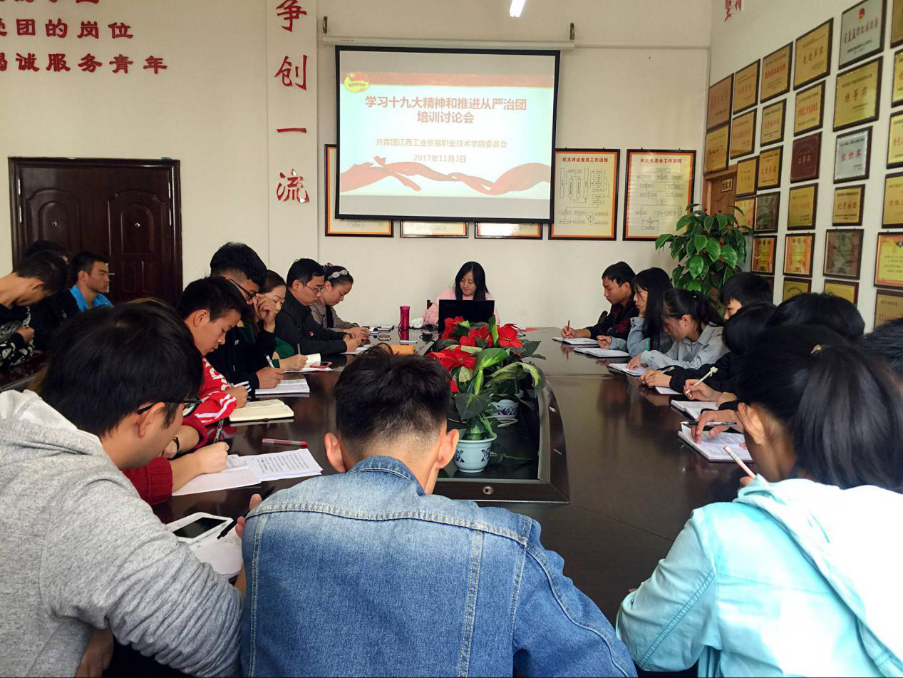 11月3日上午,院团委在204会议室组织召开了学习十九大精神和推进从严治团培训讨论会。院团委全体成员、各系(部)团总支书记及班级团支部书记代表参加了本次培训讨论会。会议由院团委书记王星主持。
