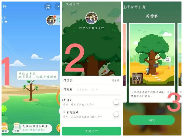 2:由班长发起创建公益树合种群,每位同学积极参加浇灌班级树。