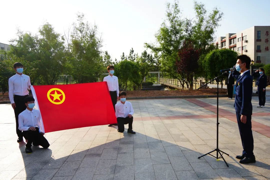 升旗仪式上,“我志愿加入中国共产主义青年团,坚决拥护中国共产党的领导,……”在青年学生代表李佳俊同学的领誓下,全体团员面向团旗庄严宣誓,字字铿锵,句句响亮,将坚定的共产主义信仰熔铸于青春的血液中。