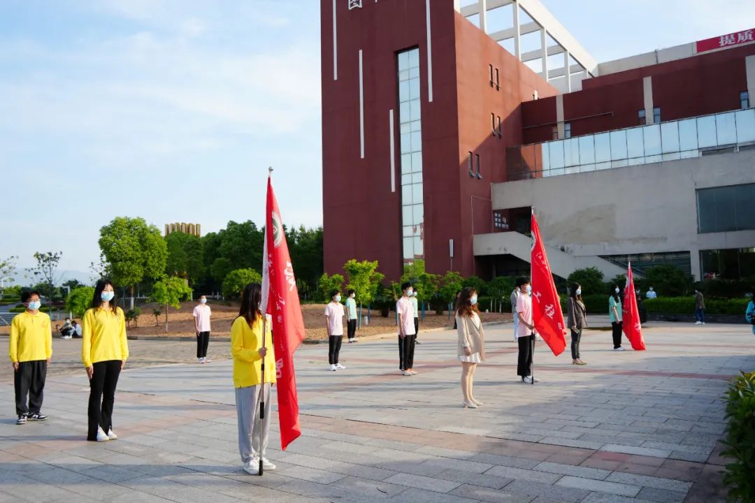 为深入学习贯彻习近平总书记在中国人民大学考察时的重要讲话精神,弘扬伟大五四精神,庆祝中国共产主义青年团成立100周年、纪念五四运动103周年,进一步激励引导广大团员青年以昂扬姿态紧跟党奋进新征程、建功新时代。5月4日上午,江西工贸职院在国旗广场举行“喜迎二十大、永远跟党走、奋进新征程”五四升旗仪式。按照疫情防控工作要求,学院全体在校院领导、各部门负责人、各系团总支书记和学生代表线下参加升旗仪式,学院广大团员青年相聚“云端”,线上参加升旗仪式,共同庆祝“五四”青年节。学院党委副书记彭锐主持升旗仪式。