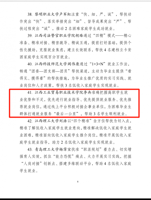 12月16日,团中央公布基层团组织、团干部开展帮扶一般院校低收入家庭学生就业工作典型经验,学院信息工程系团总支书记李冉入选基层团干部帮扶就业工作典型。