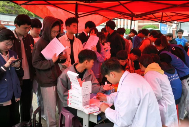 在无偿献血的队伍中,既有第一次献血的同学,也有连续多年参加献血活动的学生。自愿参加献血活动的同学们在志愿者热情的指引下积极配合工作人员进行献血流程填表、信息查询、验血、采血......整个献血过程井然有序,使献血工作有条不紊、暖意融融。