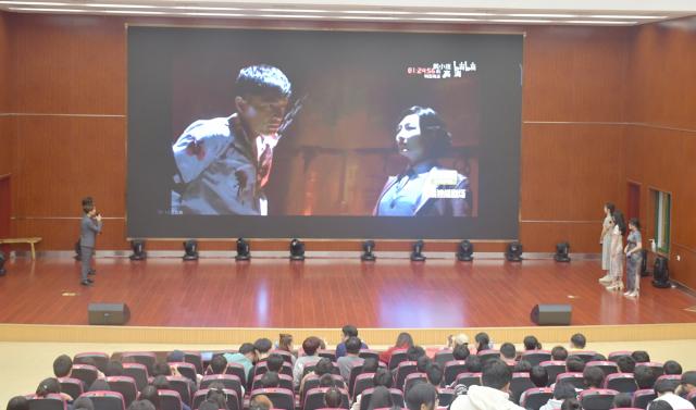为深入学习贯彻党的二十大精神,重温我党的伟大历史和光辉精神,在校园里掀起一场学习红色知识、重温红色历史、发扬红色精神的浪潮,用声音传承经典,激发学生对语言学习的热情与兴趣,展现青年学子积极向上的精神风貌。4月27日晚,由院团委主办的第十八届“红五月”文化艺术节——“声临其境传承经典”红色影视作品主题配音比赛在学术报告厅成功举办。院团委书记熊彬到场观看比赛,学院党委办公室˙党委组织部˙党委学生工作部(校友办)田玉阶老师,团委邹凡宇老师、王媛媛老师、罗慧敏老师以及院主持基地指导老师南昌大学播音主持系研究生王滢受邀担任评委,来自学院各系部师生代表近500余人观看比赛。