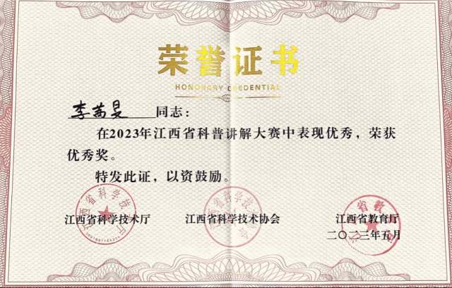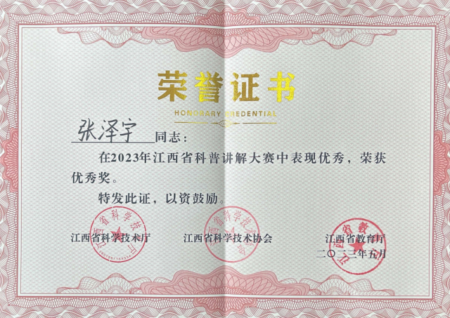 日前,由江西省科学技术厅、江西省科学技术协会、江西省教育厅主办的江西省科普讲解大赛落下帷幕,来自全省各地各单位的300多名选手参加,经过学院选拔,共有3位选手参加学院参加省级角逐。最终,李茜旻老师和张泽宇同学获省赛优秀奖,被授予江西省优秀科普使者。学院荣获优秀组织奖。