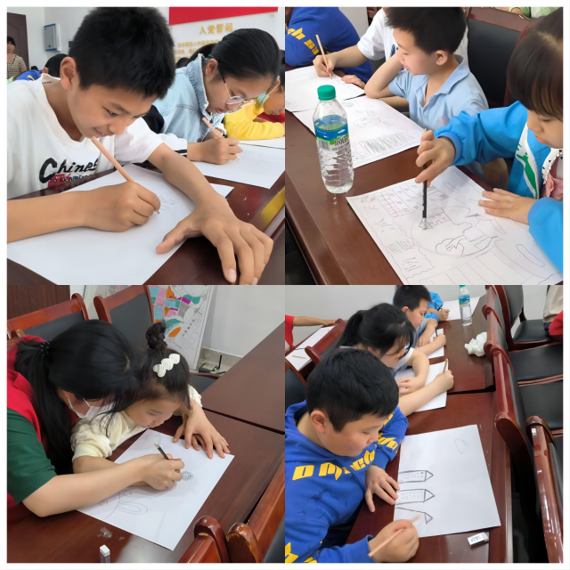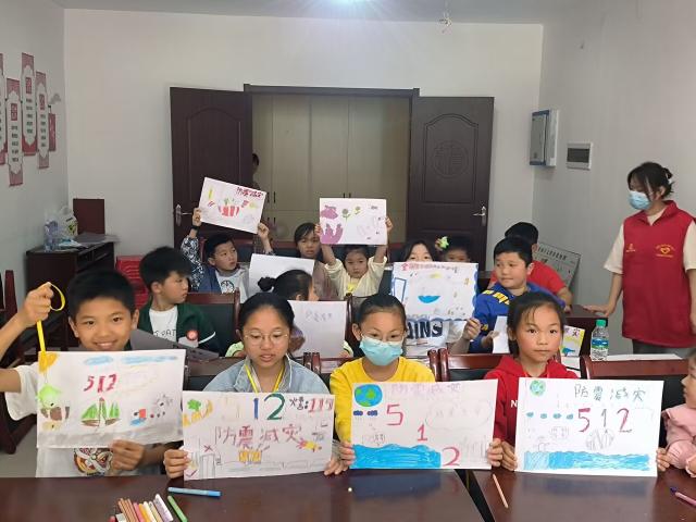 在讲授完了理论知识后,志愿者们下发纸张,鼓励孩子们制作防灾减灾主题的手抄报,在志愿者们指导下,小朋友们创造出各种特色的手抄报作品。通过制作手抄报,增强小朋友们的防灾减灾意识,在有趣的绘画过程学习防灾减灾知识,提升了孩子们面对自然灾害时的保护意识。
