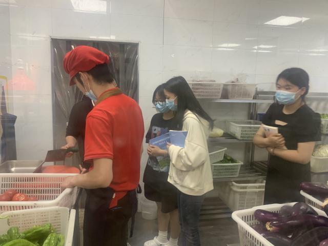 本次后厨开放日分为三队,分别前往三个学生食堂后厨进行查看。同学们在参观中详细了解学生食堂卫生管理情况、食品原材料的采购、食品加工流程、食品安全措施、食品留样和储存、厨具清洗消毒等方面,同学们边参观边询问,对学院食堂供餐的过程表现出了强烈的兴趣,也深深体会到饭菜的来之不易。