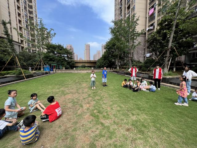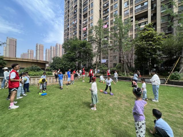 在正式开始课堂教学之前,主讲人万嘉豪给孩子们讲解了户外运动需要注意的事项,带领大家做好游戏前的热身,避免在运动过程中受伤,做好自我保护措施。同时,为孩子们简单了介绍了本次活动的各项游戏规则。随后,志愿者带领孩子们前往社区场地,将大家分为五个小组,选出每组的组长后,由组长进行自我介绍,并分享小组的名字,以及他们的口号。大家都整齐的排列好队伍,等待游戏开始。