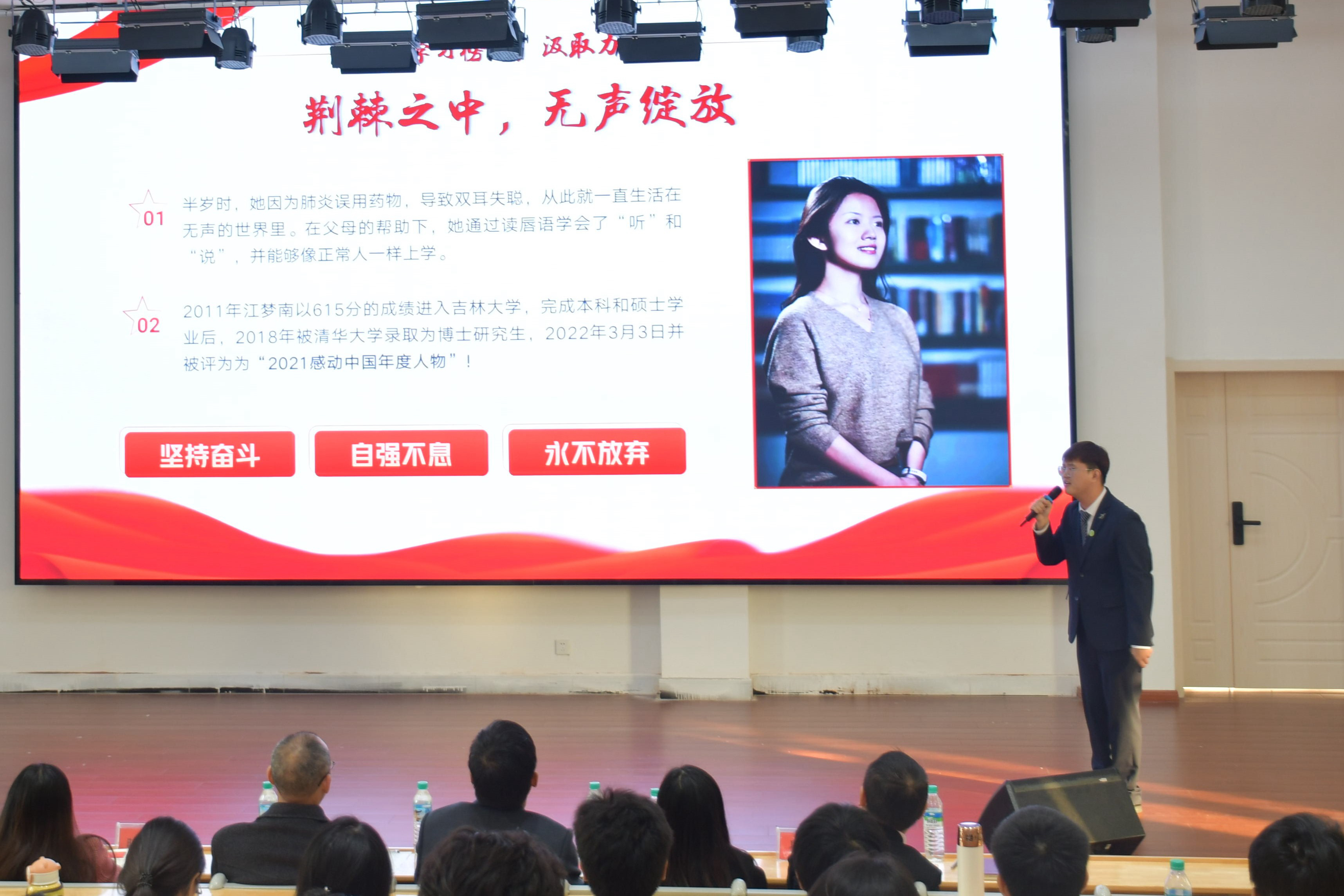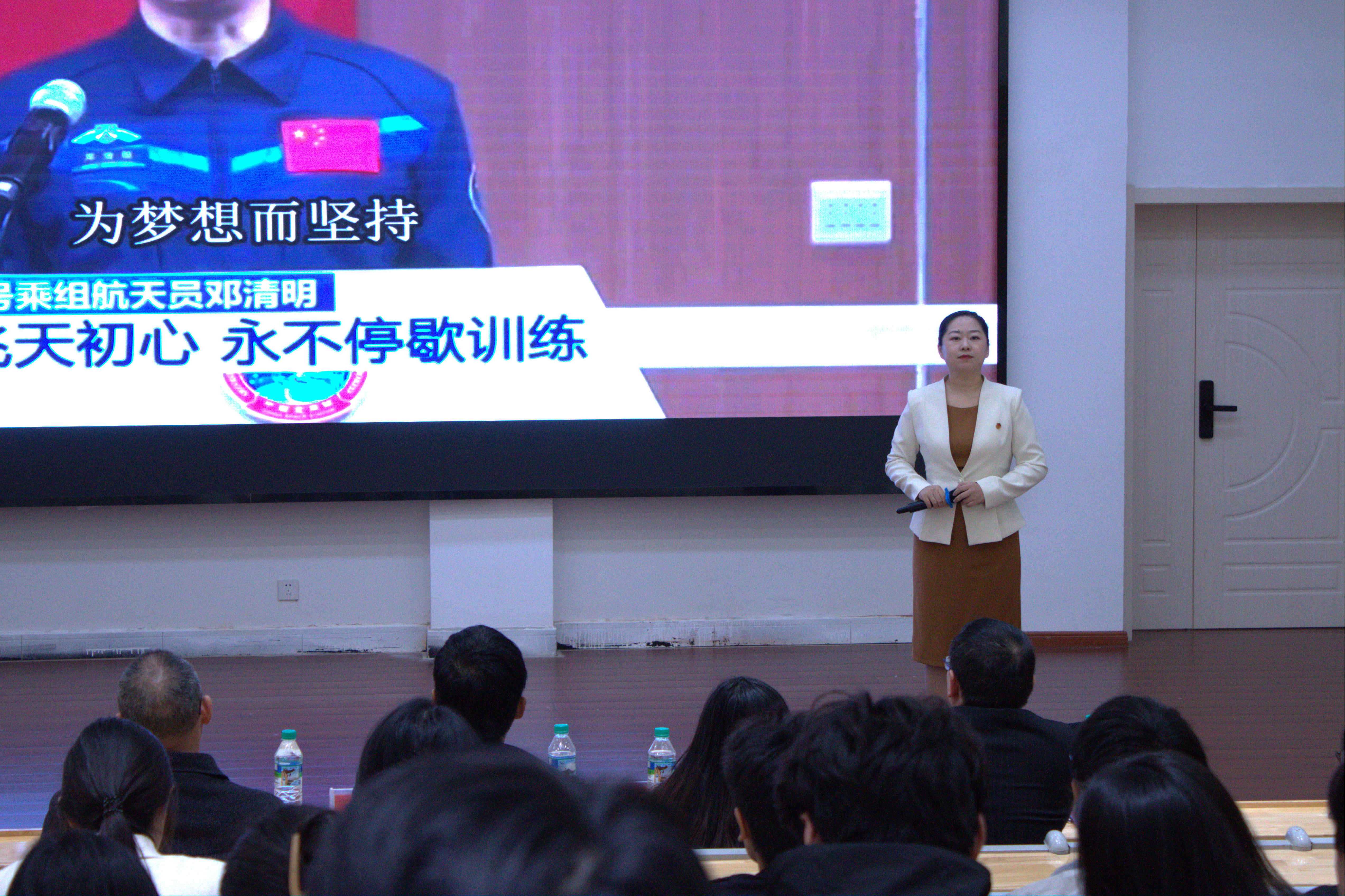 李冉老师以《坚定理想信念,绽放青春之花》为主题,通过林俊德院士和邓清明航天员的事迹引入坚定理想信念的话题,引导青年学子汲取先辈力量,激励广大青年学子立志做有理想、敢担当、能吃苦、肯奋斗的新时代好青年。陈彤同学以《浴血百年路,启航新征程》为主题,以自己参与暑期“红色寻根”调研实践活动为案例,分享在传承长征精神、赓续红色血脉中汲取到的催人奋进力量和执着追求信念,号召青年学子们结合习近平总书记对青年一代的殷殷嘱托,走好新时代赶考路,答好新时代考卷!