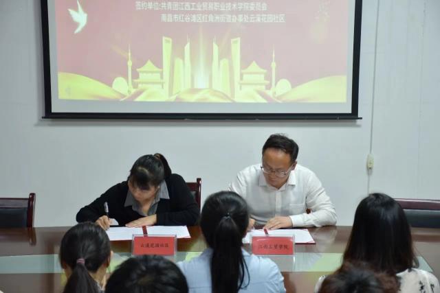 为了贯彻落实党的二十大精神、团十九大精神以及习近平总书记关于“用脚步丈量祖国大地,用眼睛发现中国精神,用耳朵倾听人民呼声,用内心感应时代脉搏,把对祖国血浓于水、与人民同呼吸共命运的情感贯穿学业全过程、融汇在事业追求中”的重要讲话精神,加强校地合作,实现校地资源共享和优势互补,全面提升学生实践能力,培养高质量的人才队伍。4月1日下午,江西工贸学院团委与红谷滩区云溪花园社区共同签署了校地共建“1+N”双向实践育人基地的协议。学院团委书记陈永乐、云溪花园社区书记丁秋云、社区工作人员及学生代表共同参加了此次签约仪式。