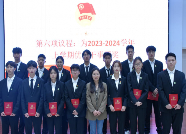 团委黄雅萍老师为2023-2024学年上学期荣获优秀干事的学生会干事颁发证书,激励所有学生会成员以他们为榜样,践行为同学服务的宗旨。