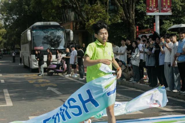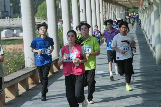 随着“三、二、一”的口令下达,“砰”一声,发令枪响,微型环校马拉松比赛正式拉开序幕。参赛选手如离弦之箭冲出起跑线,沿着精心规划的路线奋力奔跑。此次微型环校马拉松赛道途经求是楼、体育馆、金丰凌云、粮食文化长廊、产教融合综合实训大楼、爱心湖、思政长廊等校园标志性建筑,选手们一边奔跑,一边欣赏着校园美景,感受着运动的快乐,展现了工贸学子积极向上的精神风貌。为确保活动安全顺利进行,学院在赛道沿途设置了补给站,并安排了志愿者和安保人员全程保驾护航。经过激烈角逐,信息工程系郭家湖、信息工程系陈浩、经济贸易系李孛三位同学分别获得冠、亚、季军。