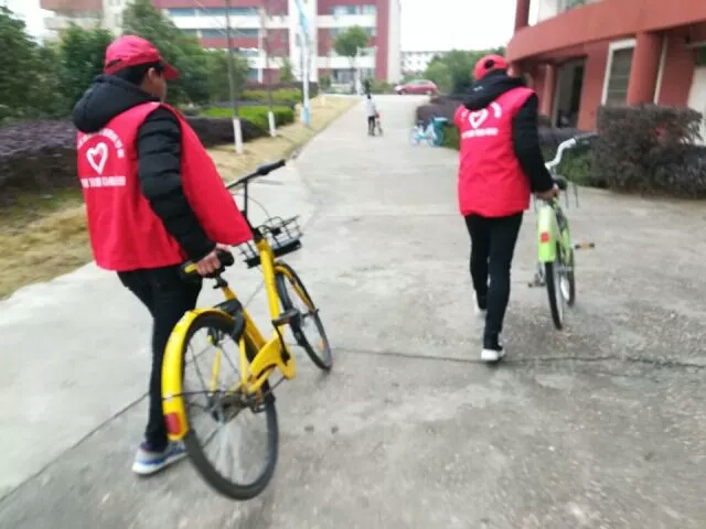 我院青年志愿者开展的“送共享单车回家”活动。虽然天气有些寒冷,但是大家依旧坚持完成自己的任务。