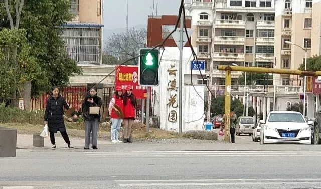 为了进一步规范交通秩序,营造良好的交通氛围,展现城市出行文明的风采。16软件技术1班团支部的团员青年们,穿上志愿者服装耐心劝导行人不要乱闯红绿灯。