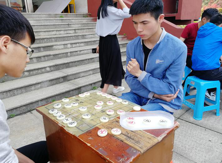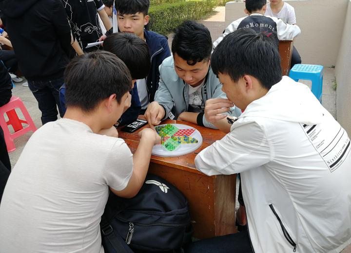 本次棋艺比赛由跳棋、五子棋和象棋三部分组成,采取淘汰制的方法,共有148名同学报名参加此次活动。比赛中,选手们本着“切磋棋艺,以棋会友”的原则,秉持“友谊第一,比赛第二”的精神,体现出较高的素质,表现出了良好的竞技状态。在这个没有硝烟的战场中,智慧是唯一的长路。选手们或深陷僵局,却不慌不忙,沉着应对;或遭遇平局,却不急不躁,妥善处理;或手握主动,却不骄不矜,保持清醒。此次活动也吸引了很多老师、同学们驻足观战。