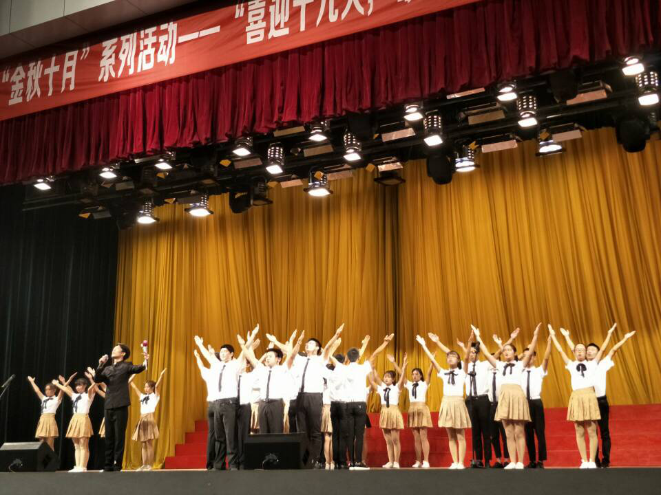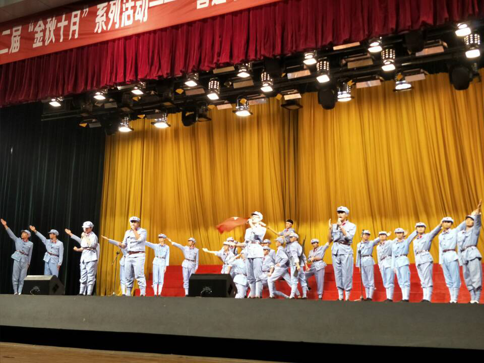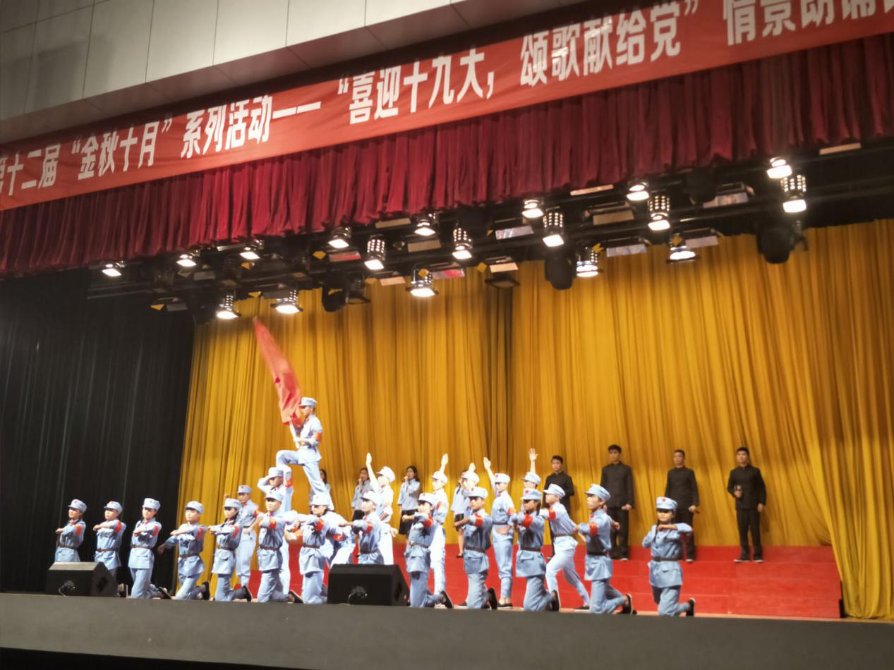(院团委 张帆报道)用诗歌向国旗致敬,用朗诵为党旗添彩。为进一步加强爱国主义教育,弘扬优秀红色文化,陶冶同学们的高尚情操。11月7日晚19时由院团委举办的“喜迎十九大,颂歌献给党”情景朗诵比赛在体育馆隆重举行。来自各系(部)的6支参赛队、近200余名演员参加比赛。学工处、院团委及各系(部)相关负责人、学生代表共计千余人到场观看。