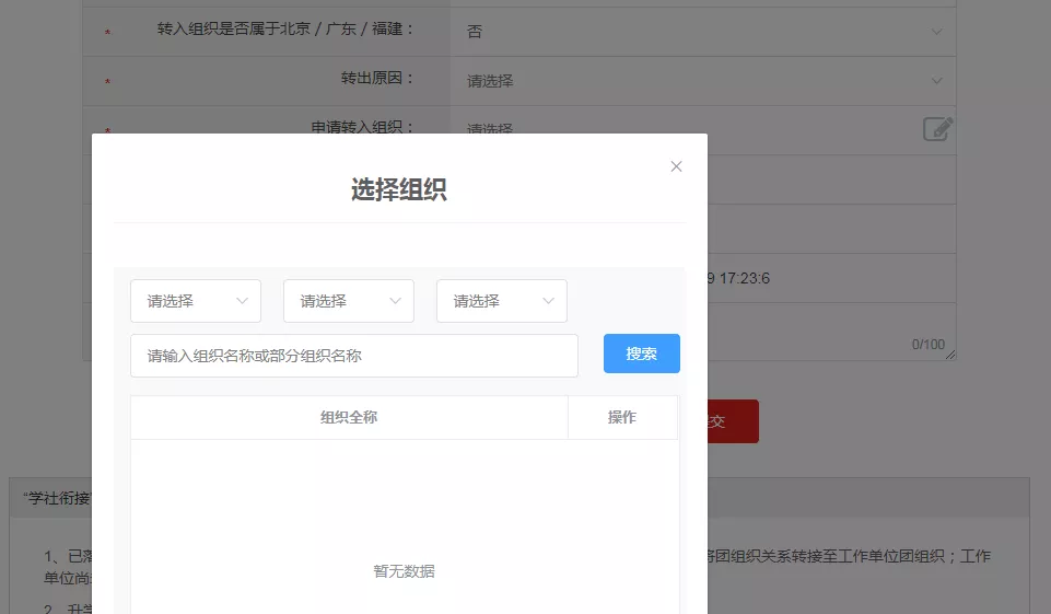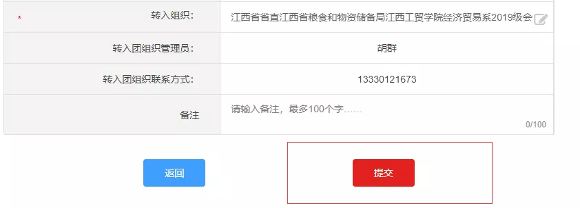 注:请勿直接选择江西工贸学院团委进行转入。